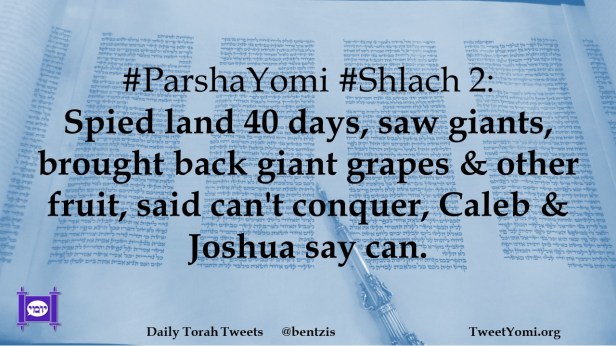 #ParshaYomi #Shlach 2: Spied land 40 days, saw giants, brought back giant grapes & other fruit, said can’t conquer, Caleb & Joshua say can.