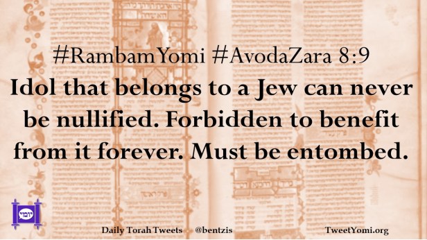 #RambamYomi #AvodaZara 8:9 Idol that belongs to a Jew can never be nullified. Forbidden to benefit from it forever. Must be entombed.