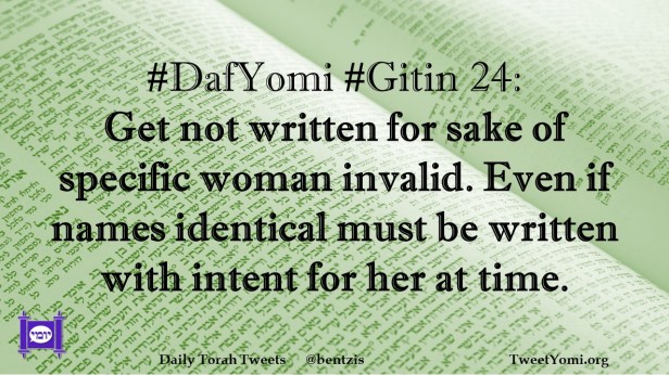 DafYomi, Gitin #DafYomi #Gitin 24 Date: June 13, 2023Author: netanelspitz #DafYomi #Gitin 24: Get not written for sake of specific woman invalid. Even if names identical must be written with intent for her at time. Share this: Share on X (Opens in new window) X Share on Facebook (Opens in new window) Facebook Like Loading... Related