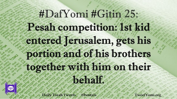 DafYomi, Gitin #DafYomi #Gitin 25 Date: June 13, 2023Author: netanelspitz #DafYomi #Gitin 25: Pesah competition: 1st kid entered Jerusalem, gets his portion and of his brothers together with him on their behalf. Share this: Share on X (Opens in new window) X Share on Facebook (Opens in new window) Facebook Like Loading... Related