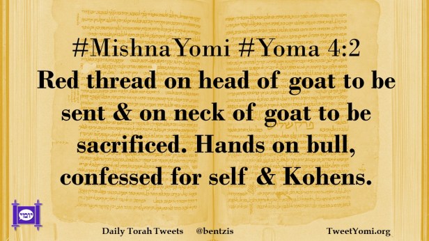 #MishnaYomi #Yoma 4:2 Red thread on head of goat to be sent & on neck of goat to be sacrificed. Hands on bull, confessed for self & Kohens.