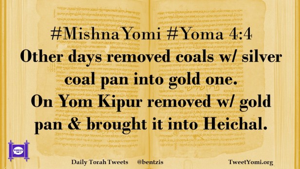 #MishnaYomi #Yoma 4:4 Other days removed coals w/ silver coal pan into gold one. On Yom Kipur removed w/ gold pan & brought it into Heichal.