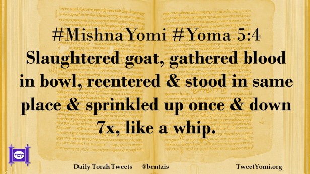 #MishnaYomi #Yoma 5:4 Slaughtered goat, gathered blood in bowl, reentered & stood in same place & sprinkled up once & down 7x, like a whip.