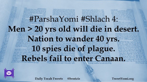 #ParshaYomi #Shlach 4: Men > 20 yrs old will die in desert. Nation to wander 40 yrs. 10 spies die of plague. Rebels fail to enter Canaan.