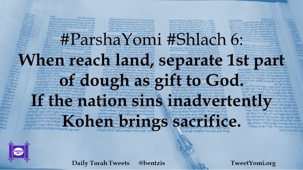 #ParshaYomi #Shlach 6: When reach land, separate 1st part of dough as gift to God. If the nation sins inadvertently Kohen brings sacrifice.