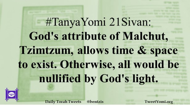 #TanyaYomi 21Sivan: God’s attribute of Malchut, Tzimtzum, allows time & space to exist. Otherwise, all would be nullified by God’s light.