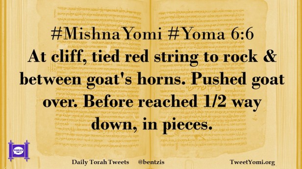 #MishnaYomi #Yoma 6:6 At cliff, tied red string to rock & between goat’s horns. Pushed goat over. Before reached 1/2 way down, in pieces.