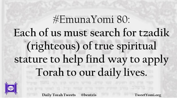 #EmunaYomi 80: Each of us must search for tzadik (righteous) of true spiritual stature to help find way to apply Torah to our daily lives.