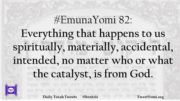 #EmunaYomi 82: Everything that happens to us spiritually, materially, accidental, intended, no matter who or what the catalyst, is from God.