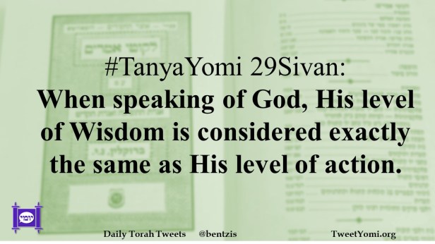 TanyaYomi #TanyaYomi 29Sivan Date: June 28, 2023Author: netanelspitz #TanyaYomi 29Sivan: When speaking of God, His level of Wisdom is considered exactly the same as His level of action. Share this: Share on X (Opens in new window) X Share on Facebook (Opens in new window) Facebook Like Loading... Related