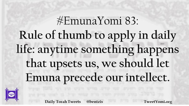 #EmunaYomi 83: Rule of thumb to apply in daily life: anytime something happens that upsets us, we should let Emuna precede our intellect.