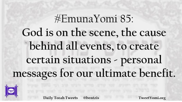 #EmunaYomi 85: God is on the scene, the cause behind all events, to create certain situations – personal messages for our ultimate benefit.