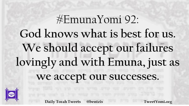 #EmunaYomi 92: God knows what is best for us. We should accept our failures lovingly and with Emuna, just as we accept our successes.