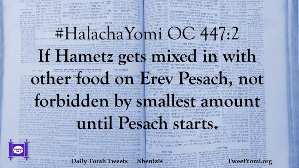 #HalachaYomi OC 447:2 If Hametz gets mixed in with other food on Erev Pesach, not forbidden by smallest amount until Pesach starts.