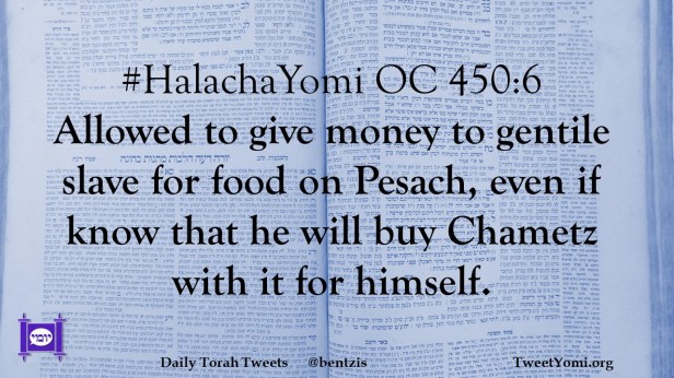 #HalachaYomi OC 450:6 Allowed to give money to gentile slave for food on Pesach, even if know that he will buy Chametz with it for himself.