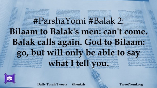 #ParshaYomi #Balak 2: Bilaam to Balak’s men: can’t come. Balak calls again. God to Bilaam: go, but will only be able to say what I tell you.