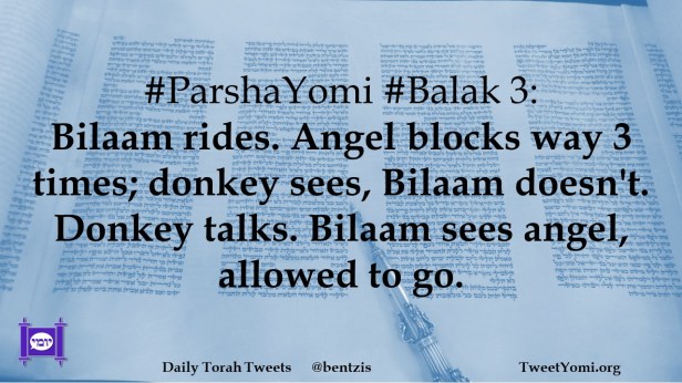 #ParshaYomi #Balak 3: Bilaam rides. Angel blocks way 3 times; donkey sees, Bilaam doesn’t. Donkey talks. Bilaam sees angel, allowed to go.