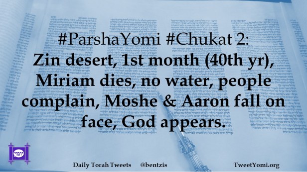 #ParshaYomi #Chukat 2: Zin desert, 1st month (40th yr), Miriam dies, no water, people complain, Moshe & Aaron fall on face, God appears.