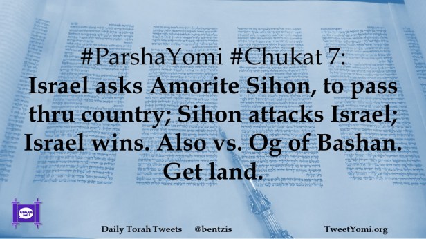 #ParshaYomi #Chukat 7: Israel asks Amorite Sihon, to pass thru country; Sihon attacks Israel; Israel wins. Also vs. Og of Bashan. Get land.