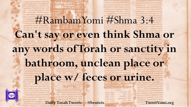 #RambamYomi #Shma 3:4 Can’t say or even think Shma or any words of Torah or sanctity in bathroom, unclean place or place w/ feces or urine.