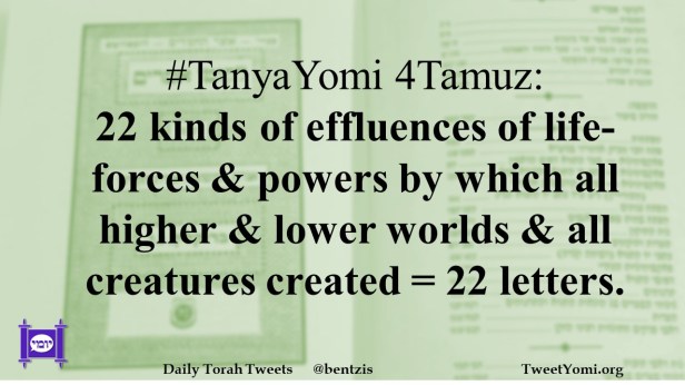 #TanyaYomi 4Tamuz: 22 kinds of effluences of life-forces & powers by which all higher & lower worlds & all creatures created = 22 letters.