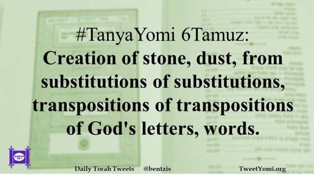 #TanyaYomi 6Tamuz: Creation of stone, dust, from substitutions of substitutions, transpositions of transpositions of God’s letters, words.