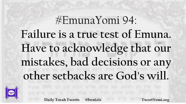 #EmunaYomi 94: Failure is a true test of Emuna. Have to acknowledge that our mistakes, bad decisions or any other setbacks are God’s will.