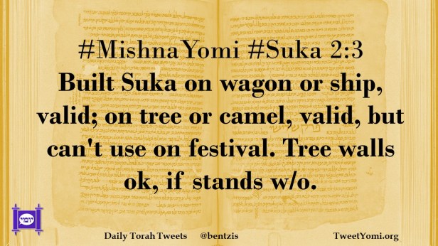 #MishnaYomi #Suka 2:3 Built Suka on wagon or ship, valid; on tree or camel, valid, but can’t use on festival. Tree walls ok, if stands w/o.