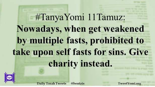 #TanyaYomi 11Tamuz: Nowadays, when get weakened by multiple fasts, prohibited to take upon self fasts for sins. Give charity instead.