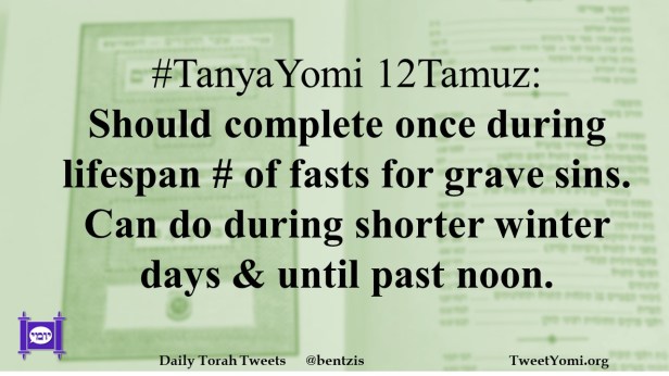 #TanyaYomi 12Tamuz: Should complete once during lifespan # of fasts for grave sins. Can do during shorter winter days & until past noon.