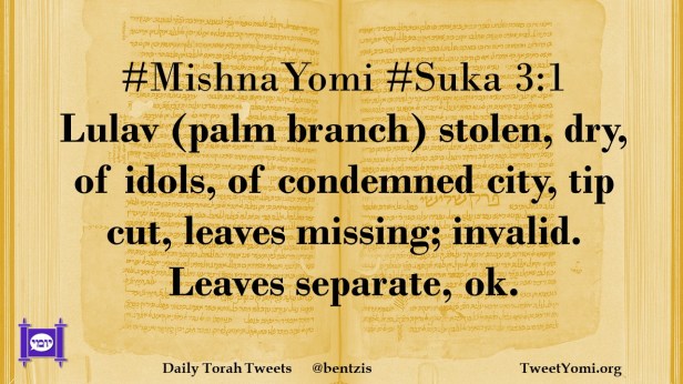 #MishnaYomi #Suka 3:1 Lulav (palm branch) stolen, dry, of idols, of condemned city, tip cut, leaves missing; invalid. Leaves separate, ok.