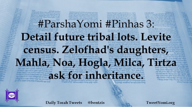 #ParshaYomi #Pinhas 3: Detail future tribal lots. Levite census. Zelofhad’s daughters, Mahla, Noa, Hogla, Milca, Tirtza ask for inheritance.