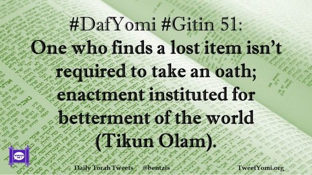 DafYomi, Gitin #DafYomi #Gitin 51 Date: July 13, 2023Author: netanelspitz #DafYomi #Gitin 51: One who finds a lost item isn’t required to take an oath; enactment instituted for betterment of the world (Tikun Olam). Share this: Share on X (Opens in new window) X Share on Facebook (Opens in new window) Facebook Like Loading... Related