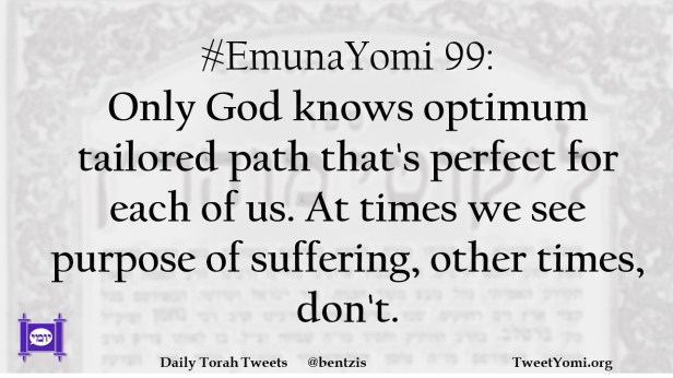 #EmunaYomi 99: Only God knows optimum tailored path that’s perfect for each of us. At times we see purpose of suffering, other times, don’t.