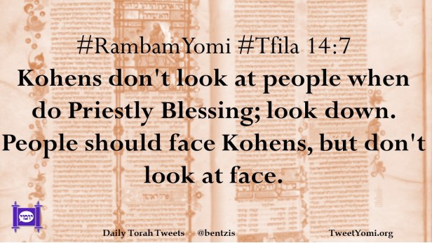 #RambamYomi #Tfila 14:7 Kohens don’t look at people when do Priestly Blessing; look down. People should face Kohens, but don’t look at face.