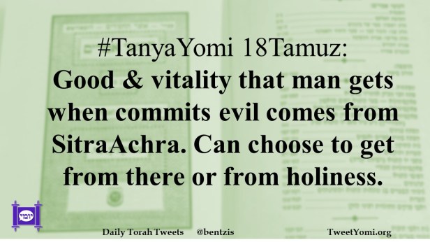 #TanyaYomi 18Tamuz: Good & vitality that man gets when commits evil comes from SitraAchra. Can choose to get from there or from holiness.
