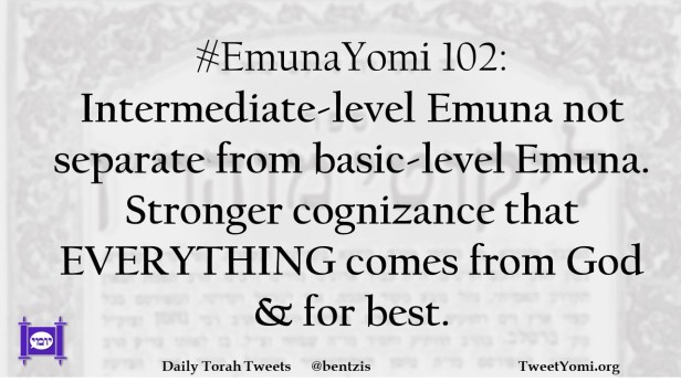 #EmunaYomi 102: Intermediate-level Emuna not separate from basic-level Emuna. Stronger cognizance that EVERYTHING comes from God & for best.