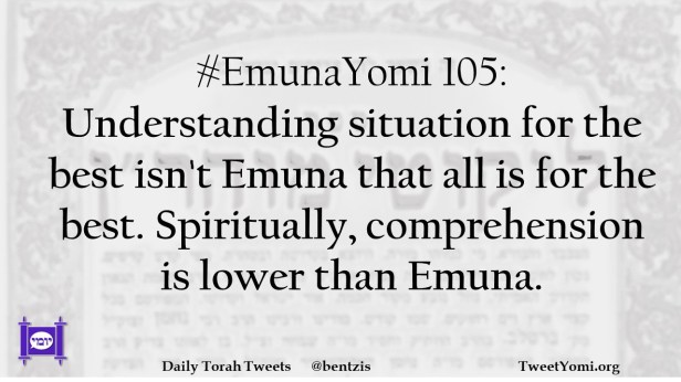 #EmunaYomi 105: Understanding situation for the best isn’t Emuna that all is for the best. Spiritually, comprehension is lower than Emuna.