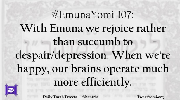 #EmunaYomi 107: With Emuna we rejoice rather than succumb to despair/depression. When we’re happy, our brains operate much more efficiently.