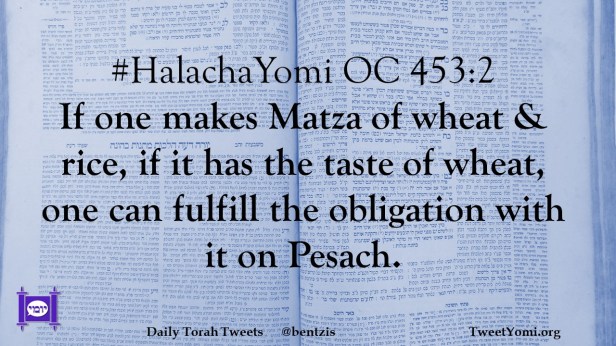 #HalachaYomi OC 453:2 If one makes Matza of wheat & rice, if it has the taste of wheat, one can fulfill the obligation with it on Pesach.