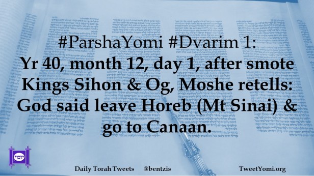 #ParshaYomi #Dvarim 1: Yr 40, month 12, day 1, after smote Kings Sihon & Og, Moshe retells: God said leave Horeb (Mt Sinai) & go to Canaan.