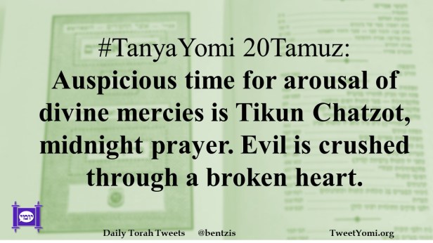 #TanyaYomi 20Tamuz: Auspicious time for arousal of divine mercies is Tikun Chatzot, midnight prayer. Evil is crushed through a broken heart.
