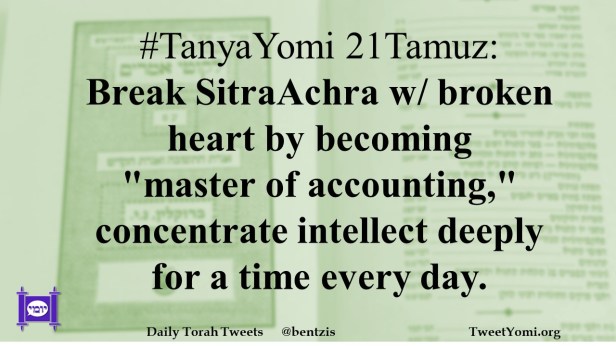 #TanyaYomi 21Tamuz: Break SitraAchra w/ broken heart by becoming “master of accounting,” concentrate intellect deeply for a time every day.