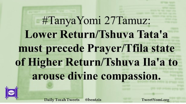 #TanyaYomi 27Tamuz: Lower Return/Tshuva Tata’a must precede Prayer/Tfila state of Higher Return/Tshuva Ila’a to arouse divine compassion.