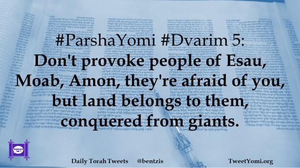 #ParshaYomi #Dvarim 5: Don’t provoke people of Esau, Moab, Amon, they’re afraid of you, but land belongs to them, conquered from giants.