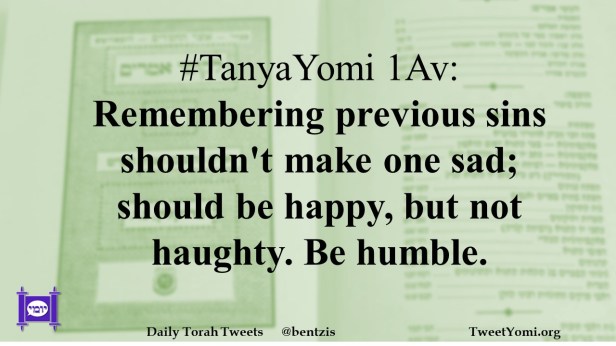 TanyaYomi #TanyaYomi 1Av Date: July 23, 2023Author: netanelspitz #TanyaYomi 1Av: Remembering previous sins shouldn’t make one sad; should be happy, but not haughty. Be humble. Share this: Share on X (Opens in new window) X Share on Facebook (Opens in new window) Facebook Like Loading... Related