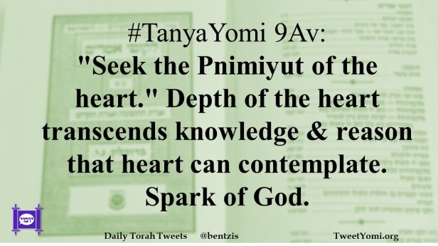 #TanyaYomi 9Av: “Seek the Pnimiyut of the heart.” Depth of the heart transcends knowledge & reason that heart can contemplate. Spark of God.