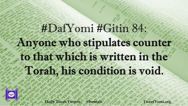 DafYomi, Gitin #DafYomi #Gitin 84 Date: August 11, 2023Author: netanelspitz #DafYomi #Gitin 84: Anyone who stipulates counter to that which is written in the Torah, his condition is void. Share this: Share on X (Opens in new window) X Share on Facebook (Opens in new window) Facebook Like Loading... Related