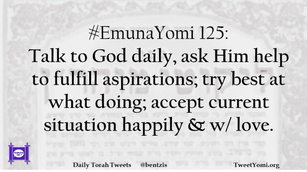 #EmunaYomi 125: Talk to God daily, ask Him help to fulfill aspirations; try best at what doing; accept current situation happily & w/ love.