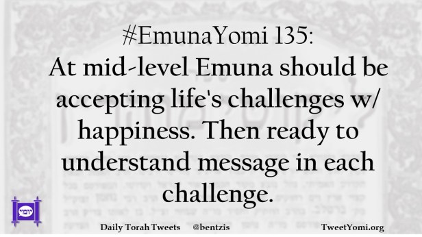 #EmunaYomi 135: At mid-level Emuna should be accepting life’s challenges w/ happiness. Then ready to understand message in each challenge.